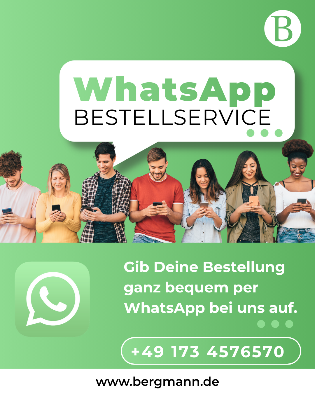 Geben Sie Ihre Bestellung einfach per WhatsApp Nachricht an +49 173 4576570 auf.